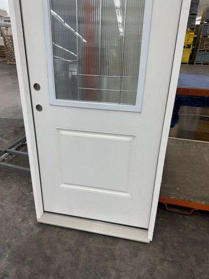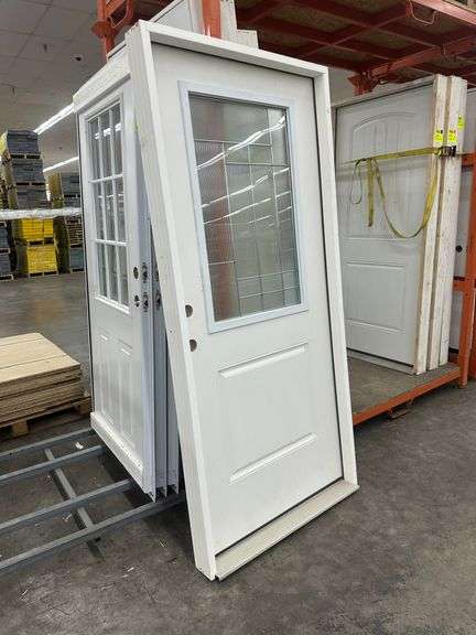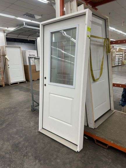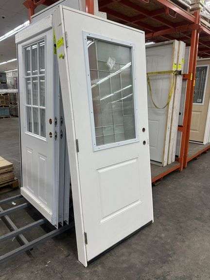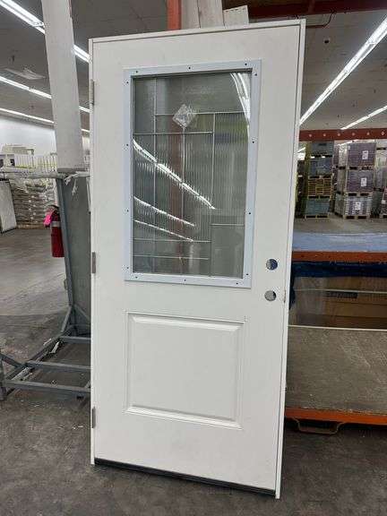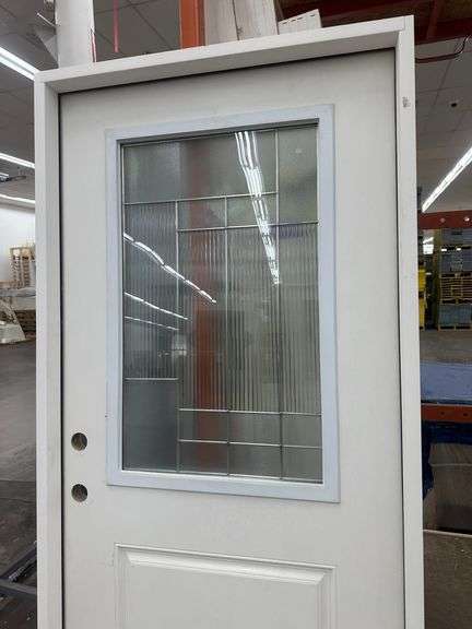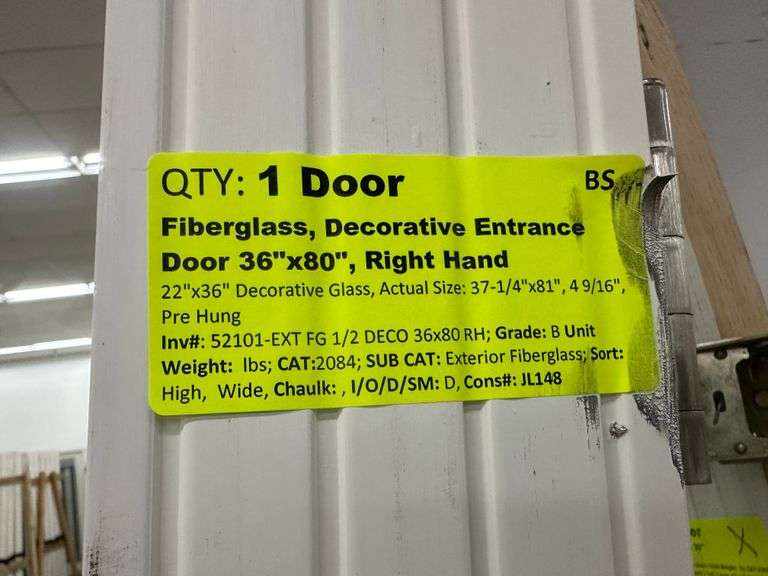 Fiberglass Decorative Entrance Door 36"x80" Right Hand. 22"x36" Decorative Glass, Actual Size: 37 1/4"x81", 4 9/16", Pre Hung, Grade: B Weight: x. Sold by: Door. Sold as: Price x Quantity.