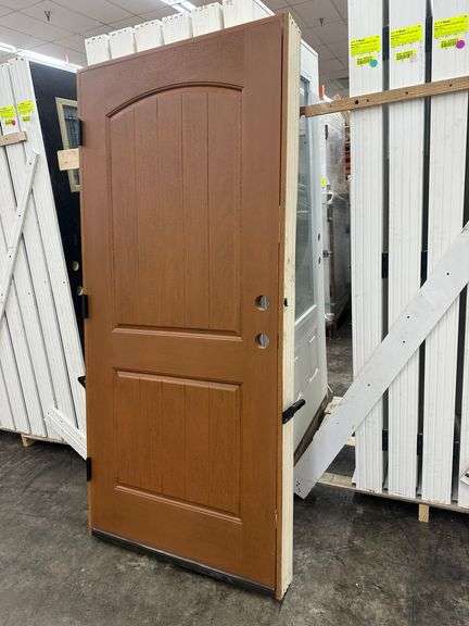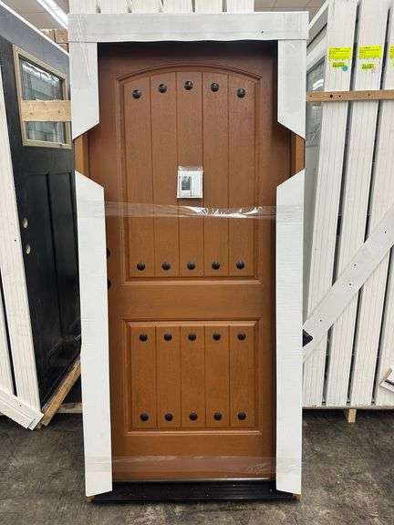 Medium Walnut, Exterior Fiberglass, 200 PP Plank Pannel W/Clavos, 36"x80", RH. By Sure Rock, 5-1/4" Jamb, BK Hardware, Net Frame: 37-1/4"x81"x5-1/4", Single, MH Texture, Pre-Hung, Grade: 1 Weight: 95. Sold by: Door. Sold as: Price x Quantity.