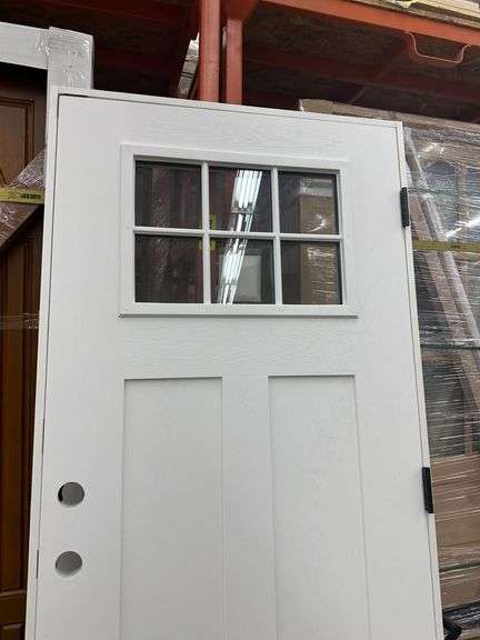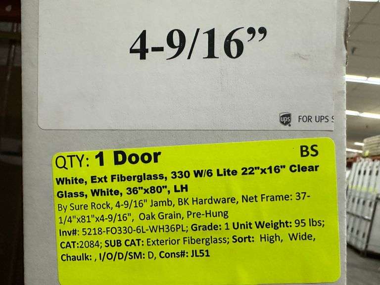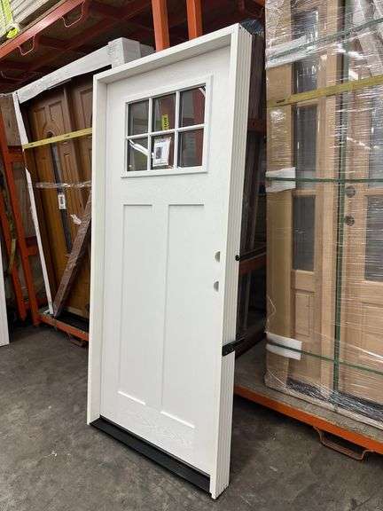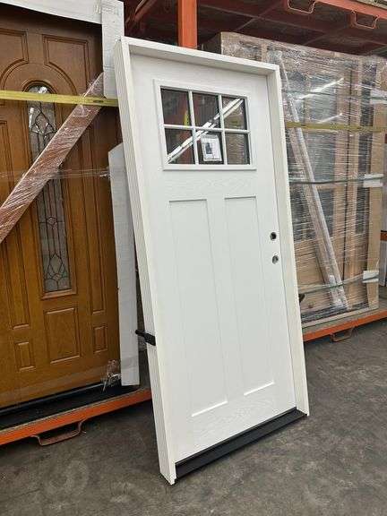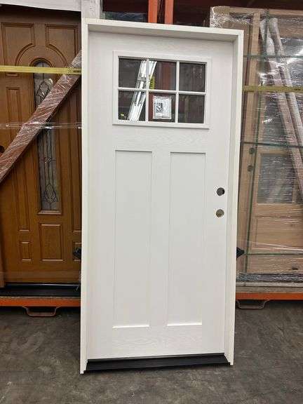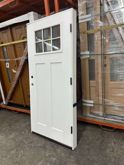 White Exterior Fiberglass 330 With 6 Lites 22"x16" Clear Glass 36"x80" Left Hand. By: Sure Rock, 4-9/16" Jamb, BK Hardware, Net Frame: 37-1/4"x81"x4-9/16", Oak Grain, Pre-Hung, Grade: 1 Weight: . Sold by: Door. Sold as: Price x Quantity.