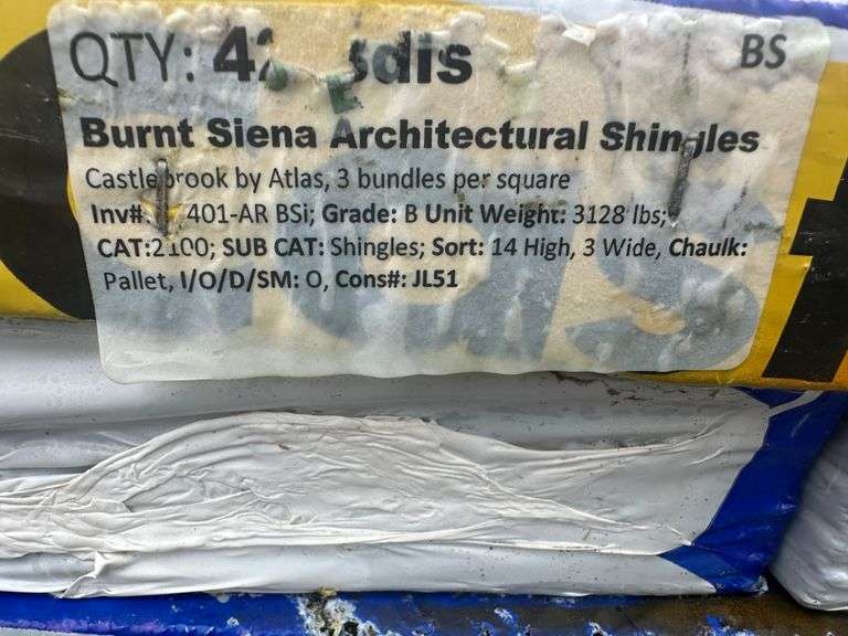 Burnt Siena Architectural Shingles. Castlebrook by Atlas, 3 Bundles per Square, Grade: B. Weight: 3128. Sold by: Bundle. Sold as: Price x Quantity.