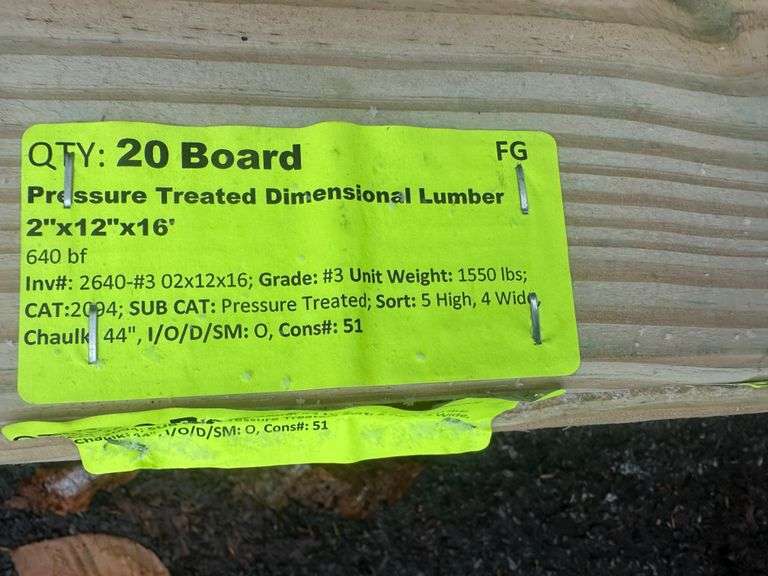 Pressure Treated Dimensional Lumber 2"x12"x16'. 640 Board Foot, Grade: #3 Weight: 1550. Sold by: Board. Sold as: Price x Quantity.