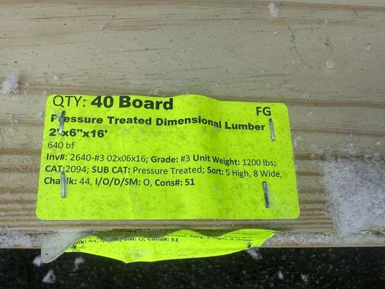 Pressure Treated Dimensional Lumber 2"x6"x16'. 640 Board Foot, Grade: #3 Weight: 1200. Sold by: Board. Sold as: Price x Quantity.