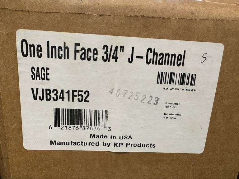 Sage 3/4" J Channel 1F 12' 6". By KP Vinyl Siding, 40 Piece per Box, Grade: A Weight: x. Sold by: Box. Sold as: Price x Quantity.