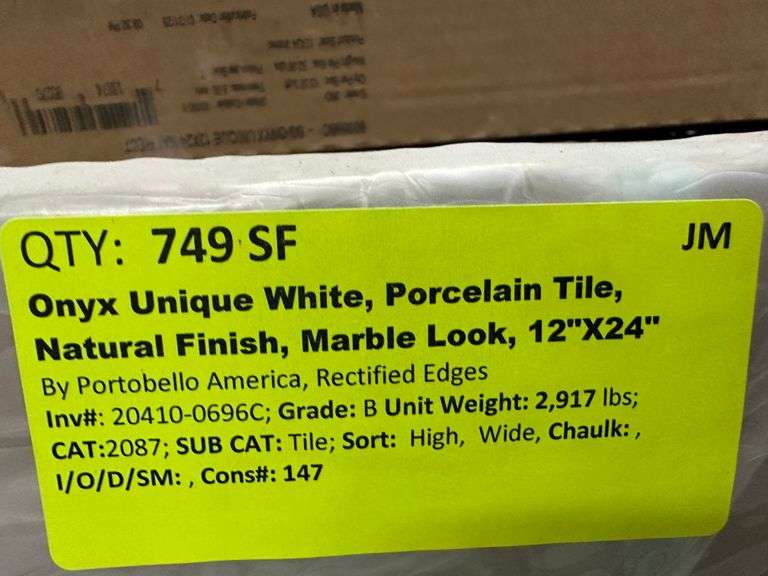 Onyx Unique White Porcelain Tile Natural Finish Marble Look 12"x24". By Portobello America, Rectified Edges, Grade: B Weight: 2917. Sold by: Square Foot. Sold as: Price x Quantity.
