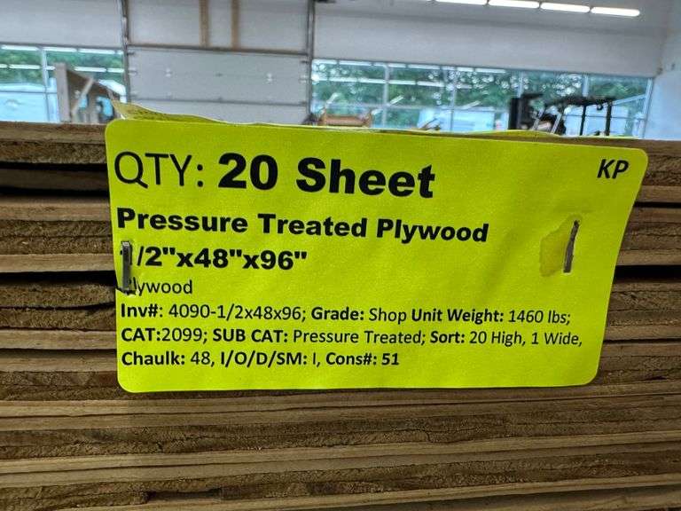 Pressure Treated Plywood 1/2"x48"x96". Grade: Shop Weight: 1460. Sold by: Sheet. Sold as: Price x Quantity.