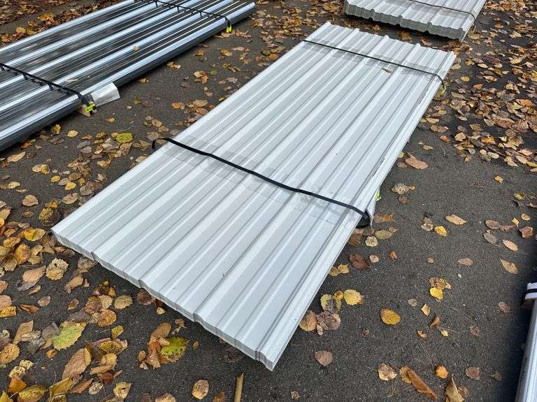 White Corrugated Metal Panel 3'x8'. 26 Gauge, 51 Pieces, Grade: B. Metal can be labeled as "B Grade" for many reasons. Some may include possible paint imperfections such as; off colors, light or heavy coating, dirt in paint, paint splash or blisters. They may contain steel imperfections such as; creases, wrinkles, wavy edges, dents, or general handling damage. When bidding on Grade B metal panels please don't assume that any two lots are the same. If you want to buy more than one (1) lot and need the same color please call us at 607-865-6951 to have us inspect the lots before you purchase. Weight: 1142. Sold by: Linear Foot. Sold as: Price x Quantity.
