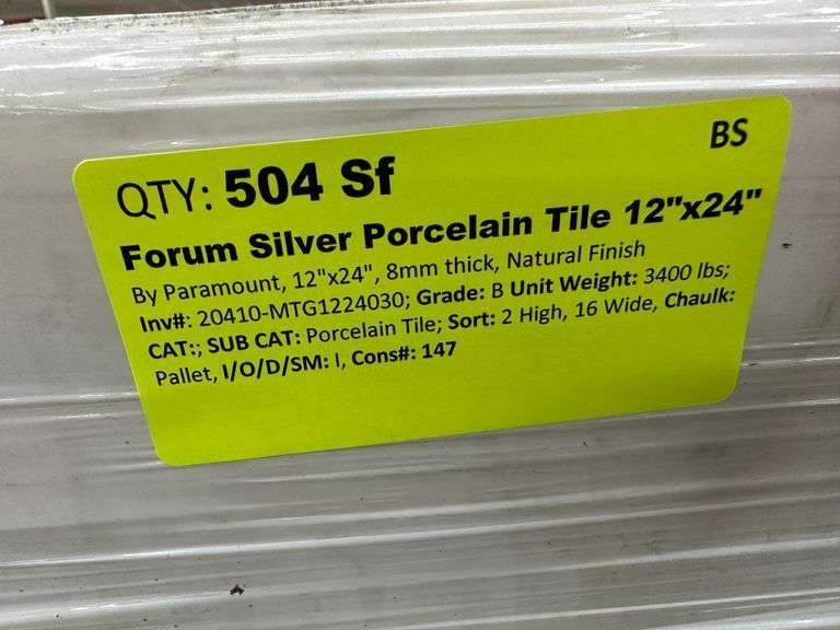 Forum Silver Porcelain Tile 12"x24". By: Paramount, 12"x24", 8mm Thick, Natural Finish, Grade: B Weight: 3400. Sold by: Square Foot. Sold as: Price x Quantity.