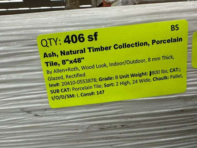 Ash Natural Timber Collection Porcelain Tile 8"x48". By Allen+Roth, Wood Look, Indoor/Outdoor, 8 mm Thick, Glazed, Rectified, Grade: B Weight: 800. Sold by: Square Foot. Sold as: Price x Quantity.