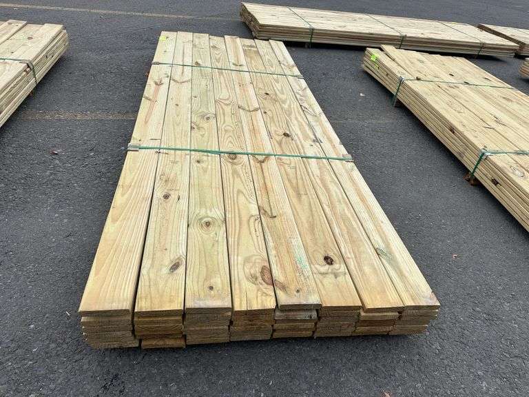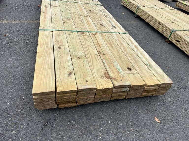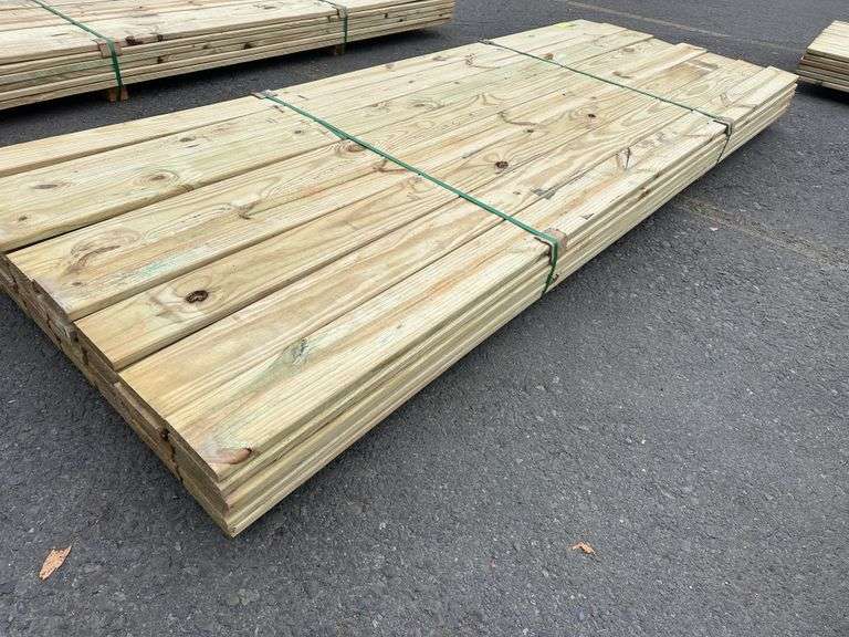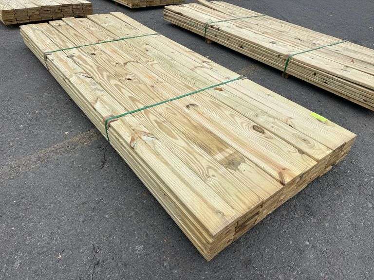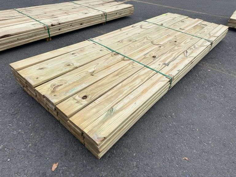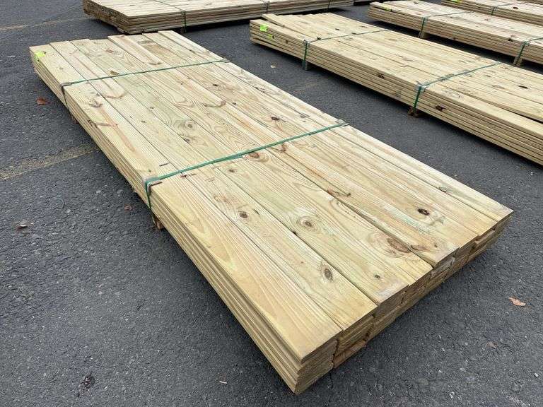 Pressure Treated Decking 5/4"x6"x10'. S4S, Actual Dimensions: 1"x5 1/2"x10', Grade: #2. *Condition Note: Fork Damage, Please See Photos.* Weight: 850. Sold by: Board. Sold as: Price x Quantity.