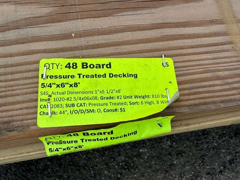 Pressure Treated Decking 5/4"x6"x8'. S4S, Actual Dimensions 1"x5 1/2"x8', Grade: #2. Weight: 810. Sold by: Board. Sold as: Price x Quantity.