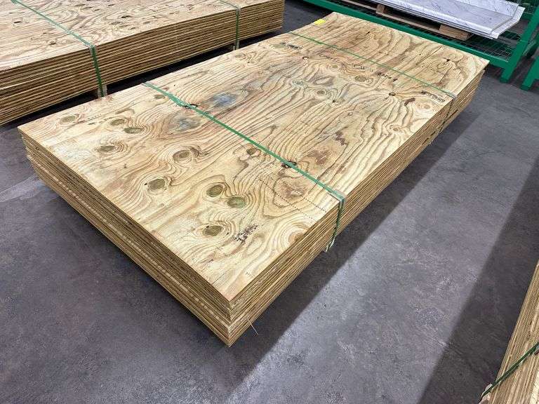 Pressure Treated Plywood 5/8"x48"x96". Grade: Shop *Condition Notes: Splits/Cracks, Please See Photos* Weight: 1400. Sold by: Sheet. Sold as: Price x Quantity.
