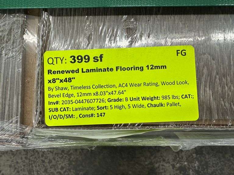 Renewed Laminate Flooring 12MMx8"x48". By Shaw, Timeless Collection, AC4 Wear Rating, Wood Look, Bevel Edge, 12MMx8.03x47.64", Grade: B Weight: 985. Sold by: Square Foot. Sold as: Price x Quantity.