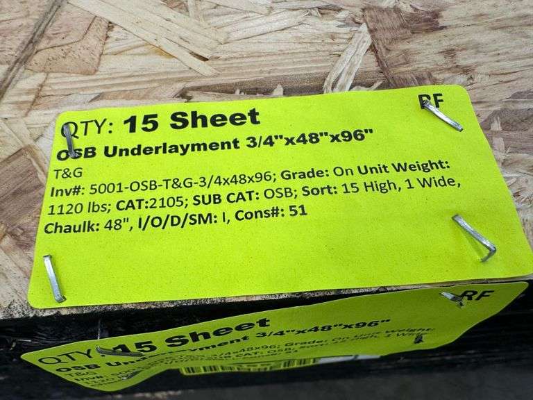 OSB Underlayment 3/4"x48"x96". T&G, Grade: On, *Condition Note: Fork Damage, Please See Photos* Weight: 1120. Sold by: Sheet. Sold as: Price x Quantity.