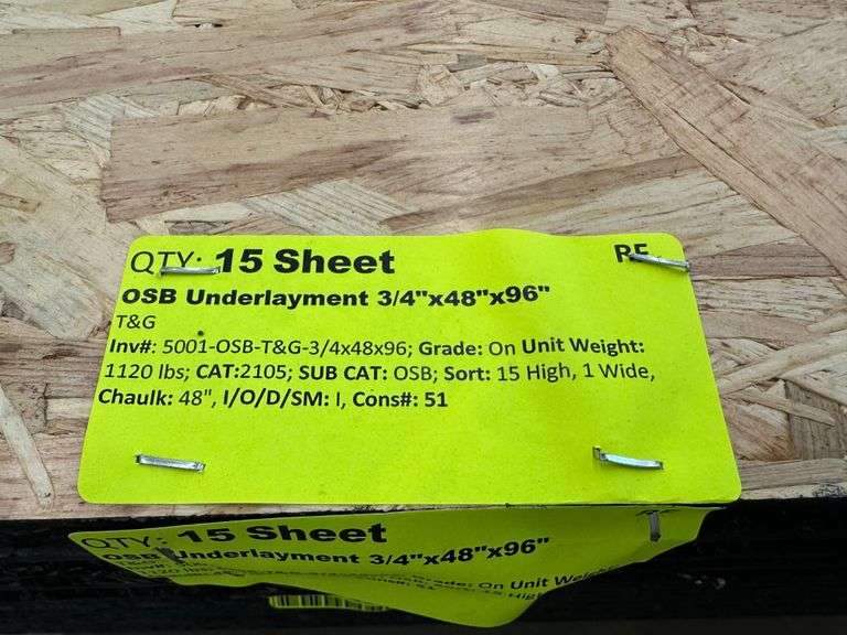 OSB Underlayment 3/4"x48"x96". T&G, Grade: On, *Condition Note: Fork Damage, Please See Photos* Weight: 1120. Sold by: Sheet. Sold as: Price x Quantity.
