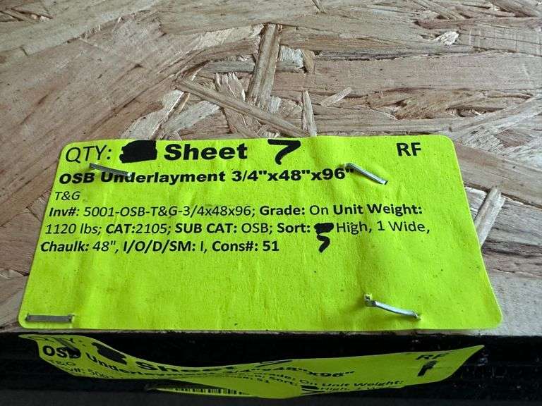 OSB Underlayment 3/4"x48"x96". T&G, Grade: On, *Condition Note: Fork Damage, Please See Photos* Weight: x. Sold by: Sheet. Sold as: Price x Quantity.