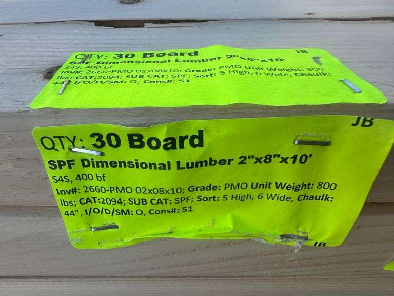 SPF Dimensional Lumber 2"x8"x10'. S4S, 400 Board Foot, Grade: PMO Weight: 800. Sold by: Board. Sold as: Price x Quantity.