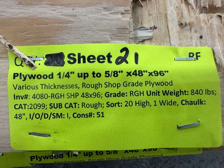 Plywood 1/4" up to 5/8"x48"x96". Various Thicknesses, Rough Shop Grade Plywood. Grade:RGH *Delaminated, Broken and Unsquared See Photos* Weight: 840. Sold by: sheet. Sold as: Price x Quantity.