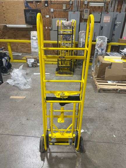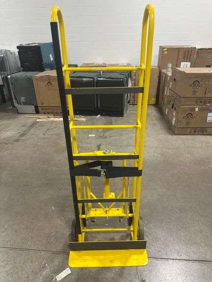 Strongway Industrial Appliance Hand Truck 1200-Lb. Capacity, 2 or 4 Wheel Position, Rubber Coated St. This heavy-duty Strongway 2-wheel industrial hand truck featuring kickback swivel wheels for support easily converts to a 4-wheel truck. This unit has exceptional stair climbing ability and includes easy auto-rewind ratchet belt tightening for secure cargo hold. Use in the 2-wheel or 4-wheel position. This hand truck is great for transporting vending machines, appliances, safes, furniture and other large, bulky items. Weight: . Sold by: . Sold as: Price x Quantity.