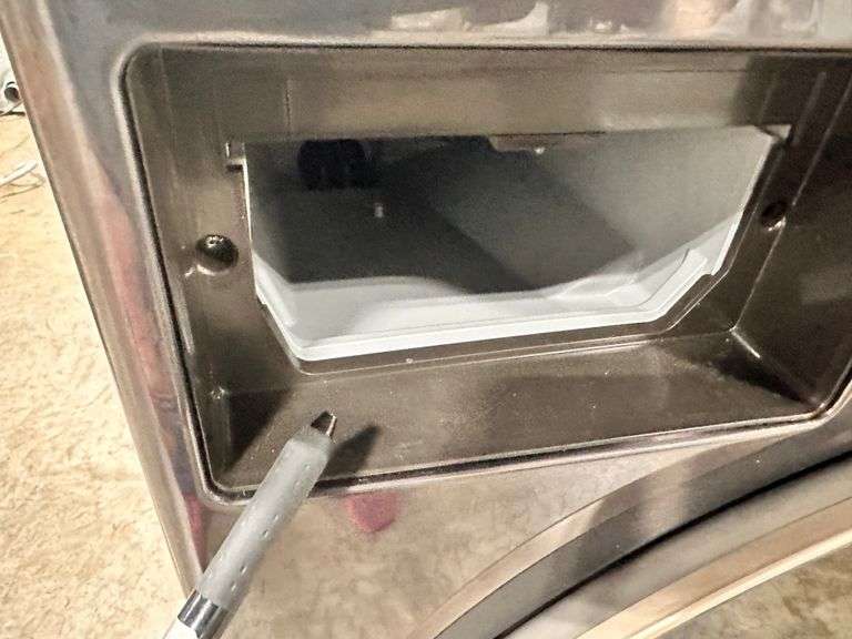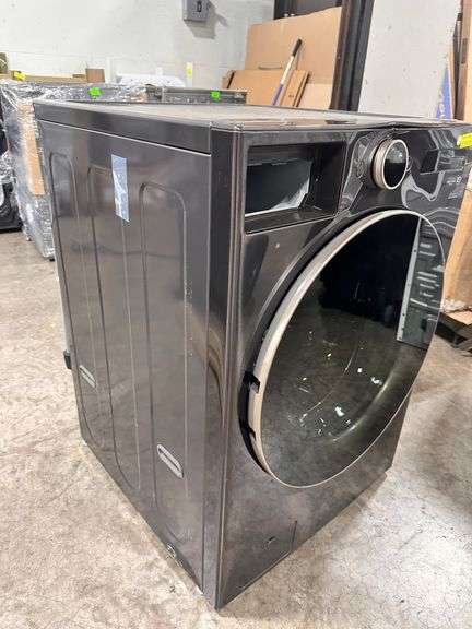 LG 5.0 cu. ft. Mega Capacity Smart Front Load ENERGY STAR Washer. Dent by the control and missing spot where soap goes. Dent in the back panel. 27" x 39" x 33 1/8". Color: Dark grey. With TurboWash® 360° Technology, power clean big loads in under 30 minutes Weight: . Sold by: . Sold as: Price x Quantity.