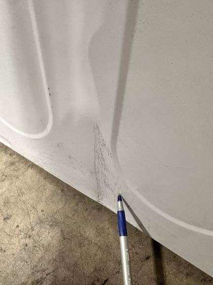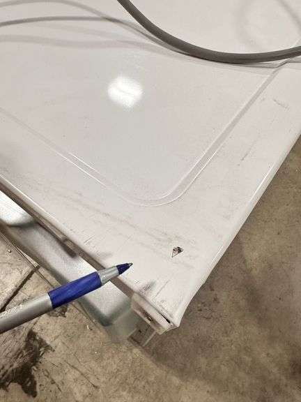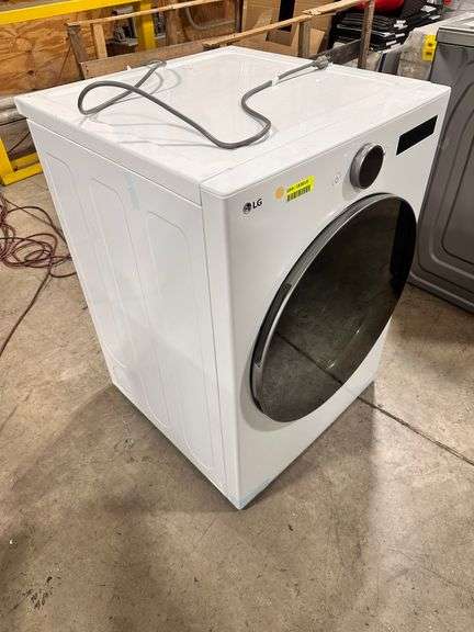 LG 7.4 cu. ft. Vented Stackable SMART Gas Dryer in White. Small dents to bottom right side, minor scratch to top right side, several dents to back panel, small dent to bottom left side, minor scratches on the top. 39" x 27" x 29.75". Digital dial control with LCD Display Our intuitive dial control. Built-in sensors use AI technology to detect fabric texture and load size. Weight: . Sold by: . Sold as: Price x Quantity.
