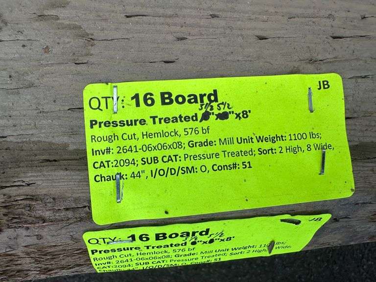 Pressure Treated 5 1/2"x5 1/2"x8'. Rough Cut, Hemlock, 576 Board Foot, Grade: Mill Weight: 1100. Sold by: Board. Sold as: Price x Quantity.