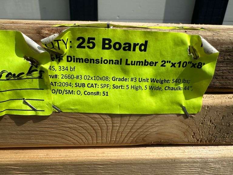 SPF Dimensional Lumber 2"x10"x8'. S4S,334 bf Grade:#3 *Condition Notes: Mold, Splits/Cracks, Please See Photos* Weight: 540. Sold by: Board. Sold as: Price x Quantity.
