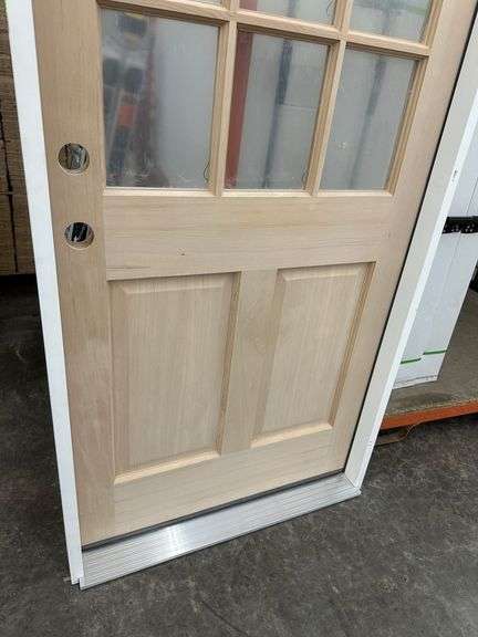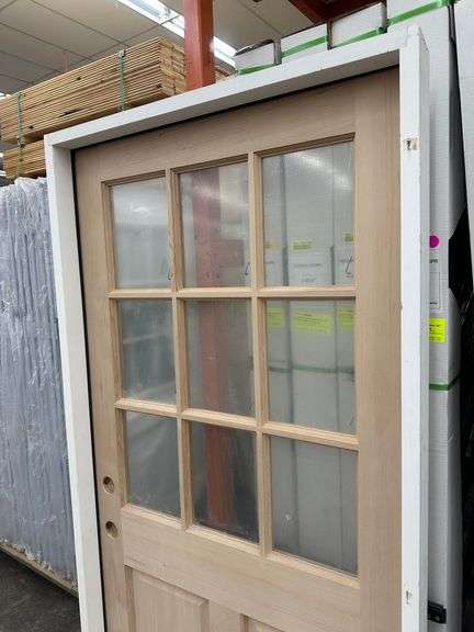 Doug Fir Exterior 9 Lite Door 36"x 80" RH. Unfinished, Single Pane Glass, Prehung, Grade: 1st Quality Weight: x. Sold by: Door. Sold as: Price x Quantity.