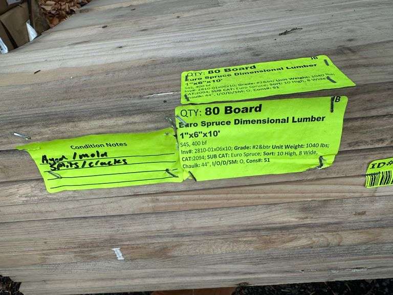 Euro Spruce Dimensional Lumber 1"x6"x10'. S4S, 400 Board Foot, Grade: #2&btr, *Condition Notes: Aged/Mold, Splits/Cracks, Please See Photos* Weight: 1040. Sold by: Board. Sold as: Price x Quantity.