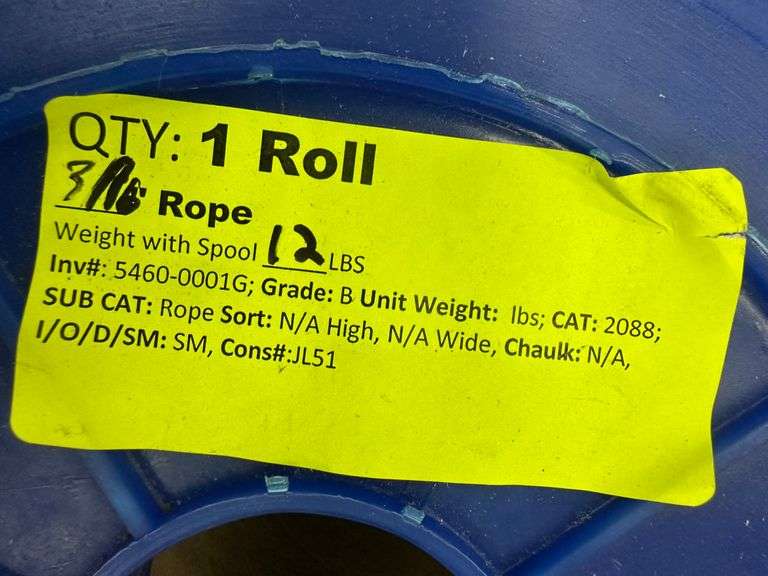 12 Pounds 3/16" Rope. Weight With Spool, Grade B Weight: 12. Sold by: Roll. Sold as: Price x Quantity.