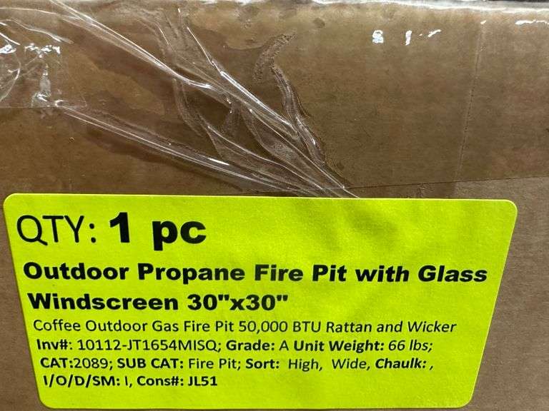 Outdoor Propane Fire Pit with Glass Windscreen 30"x30". Coffee Outdoor Gas Fire Pit 50,000 BTU Rattan ans Wicker. Grade: A Weight: 66. Sold by: Piece. Sold as: Price x Quantity.