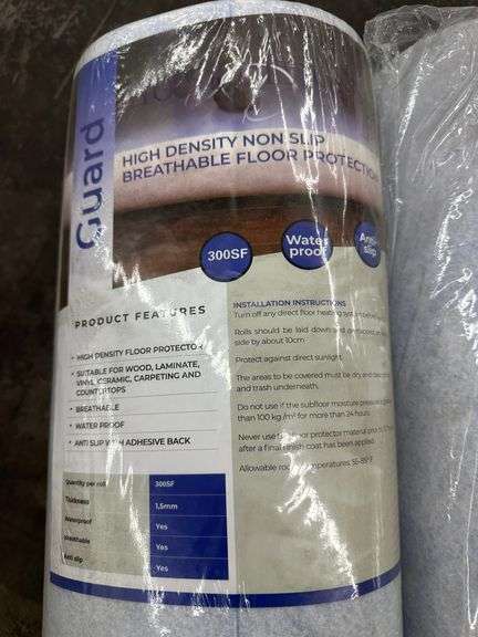 Floor Guard. By Home Design, High Density, For Wood, Laminate, Vinyl, Ceramic, Carpeting and Countertop, Breathable, Waterproof. Anti Slip W/ Adhesive Back 300 Square Foot Per Roll, 1.5mm Thickness, Grade: 1st Quality Weight: 22. Sold by: Roll. Sold as: Price x Quantity.