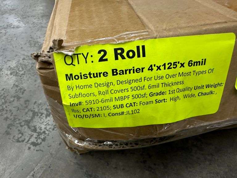 Moisture Barrier 4'x125'x6 mil. By Home Design, Designed for Use Over Most Types of Subfloors, Roll Covers 500 Square Foot, 6 mil Thickness, Grade: 1st Weight: x. Sold by: Roll. Sold as: Price x Quantity.