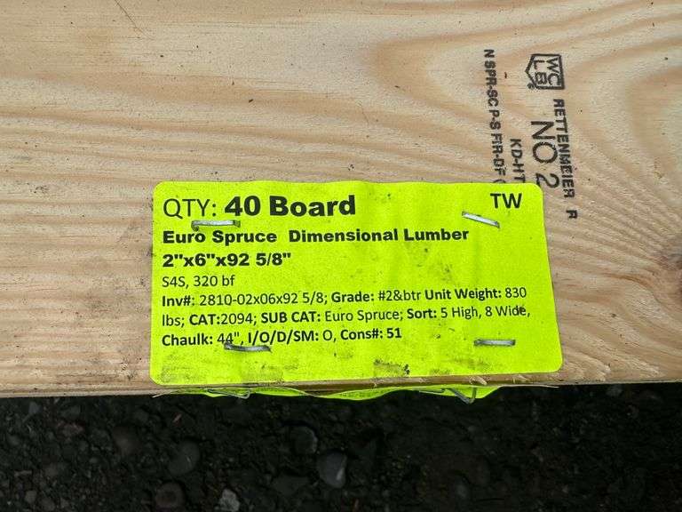 Euro Spruce Dimensional Lumber 2"x6"x92 5/8". S4S, 320 Board Foot, Grade #2&btr, *Condition Note: Fork Damage, Please See Photos* Weight: 830. Sold by: Board. Sold as: Price x Quantity.