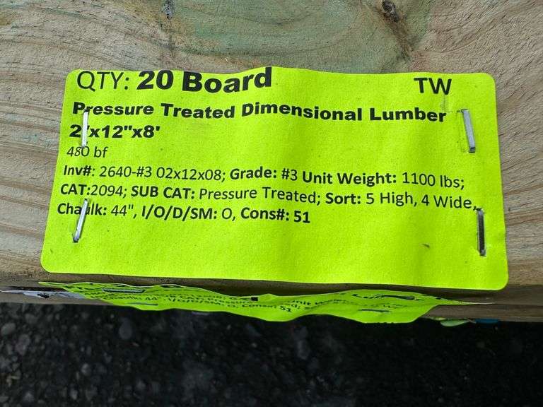 Pressure Treated Dimensional Lumber 2"x12"x8'. 480 Board Foot, Grade: #3 Weight: 1100. Sold by: Board. Sold as: Price x Quantity.