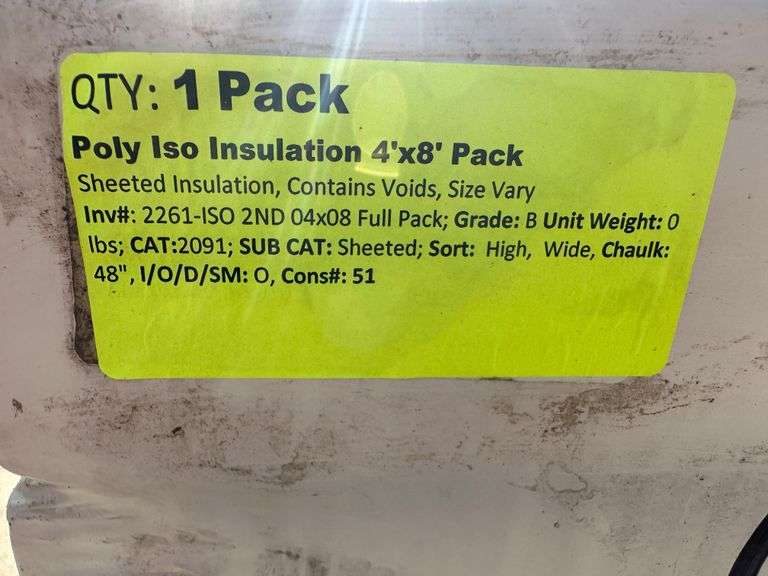Poly Iso Insulation 4'x8' Pack. Sheeted Insulation, Contains Voids, Size Varies, Grade: B Weight: x. Sold by: Pack. Sold as: Price x Quantity.