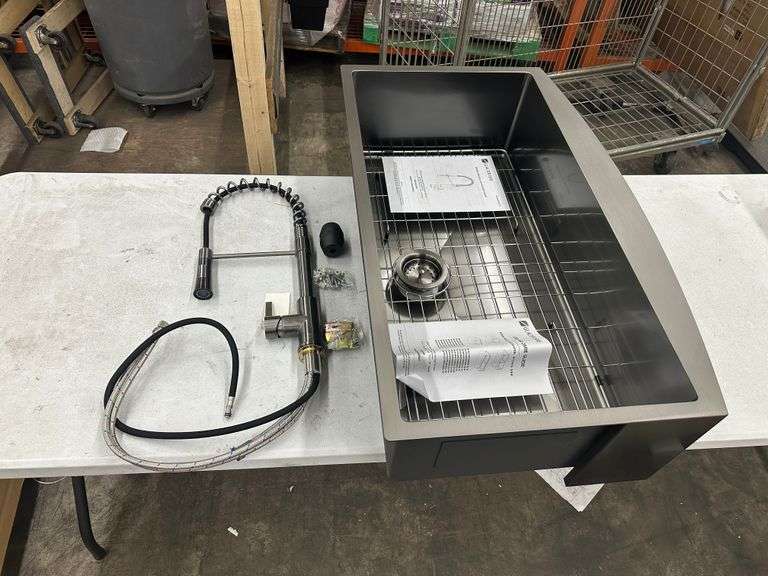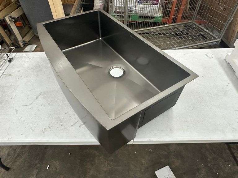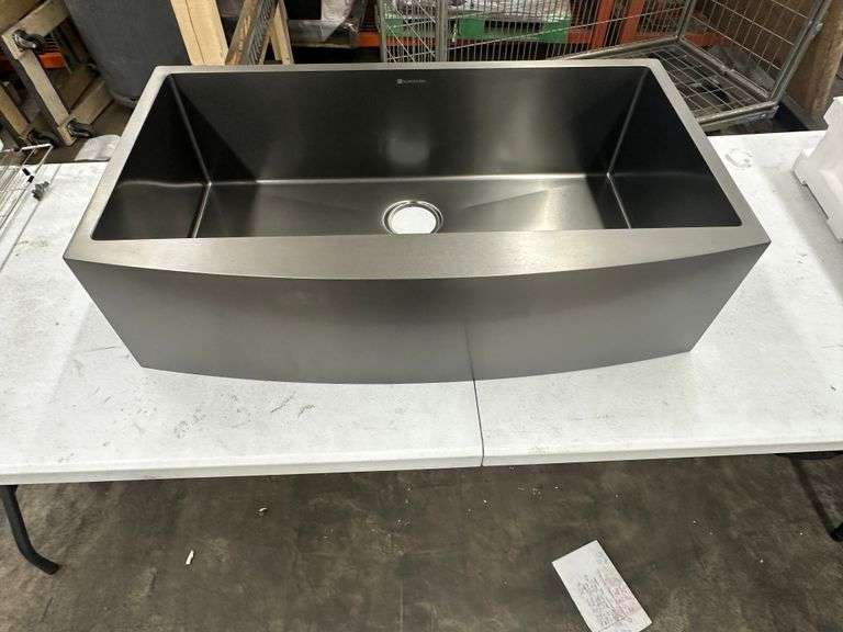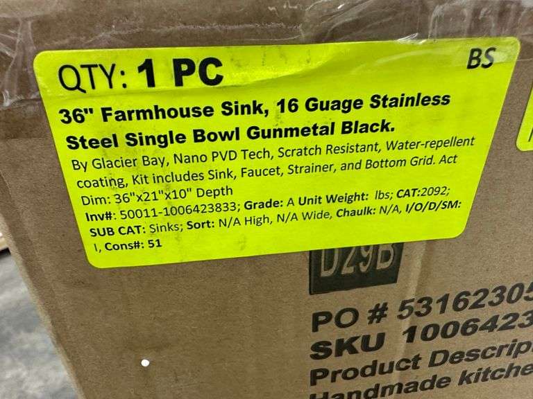 36" Farmhouse Sink 16 Guage Stainless Steel Single Bowl Gunmetal Black. By Glacier Bay, Nano PVD Tech, Scratch Resistant, Water-Repellant Coating, Kit Includes Sink, Faucet, Strainer, and Bottom Grid. Actual Dimensions: 36"x21"x10" Depth Weight: x. Sold by: Piece. Sold as: Price x Quantity.