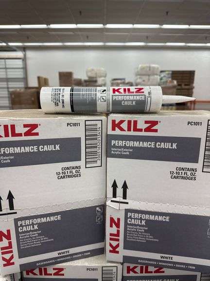 10.1 oz Interior/Exterior Performance Caulk. By Kilz, White no crack or shiners, paintable in 30 minutes. 2 cases, 12 tubes per case. Grade: A Weight: 56. Sold by: Tube. Sold as: Price x Quantity.