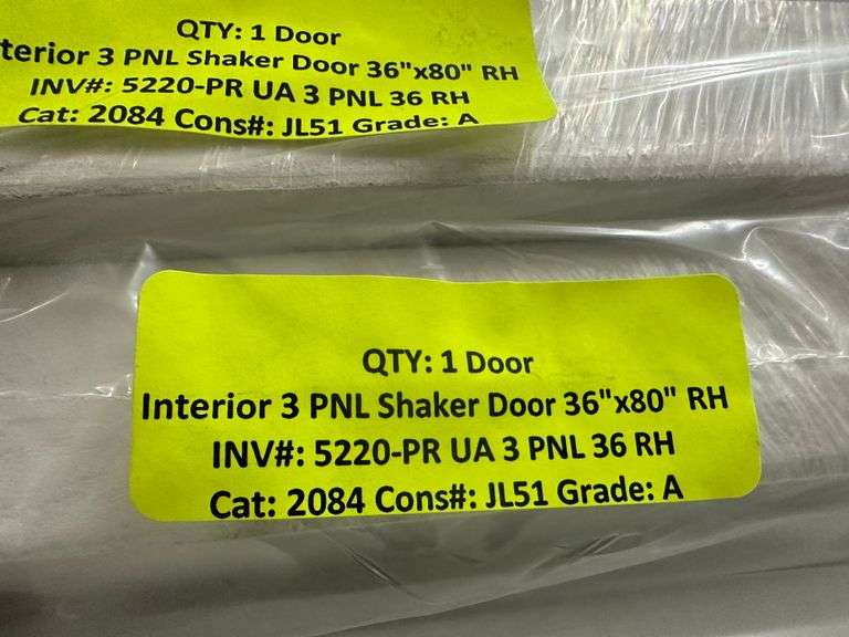 Primed Interior 3 PNL Shaker Door 36"x80" RH (Unassembled). Interior 3 PNL Shaker Door 36"x80" RH Grade: A Weight: x. Sold by: Door. Sold as: Price x Quantity.
