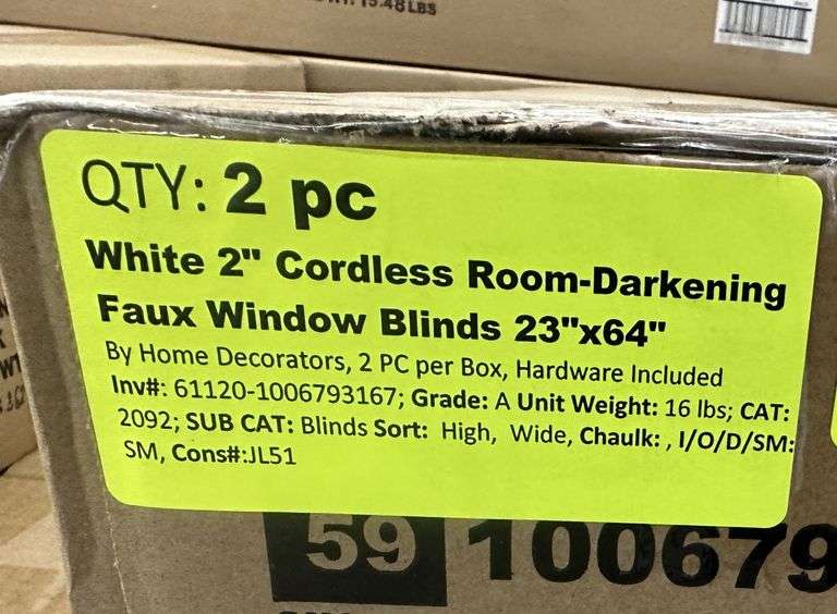 White 2" Cordless Room-Darkening Faux Window Blinds 23"x64". By Home Decorators, 2 PC per Box, Hardware Included Grade: A Weight: 16. Sold by: Piece. Sold as: Price x Quantity.