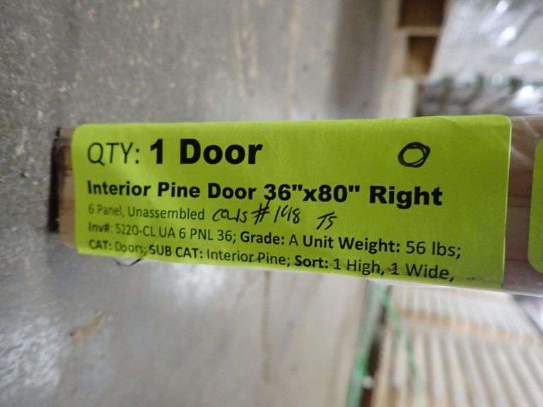 Unassembled Interior 6 Panel Clear Pine Door 36"x80" RH. Grade: A Weight: x. Sold by: Door. Sold as: Price x Quantity.