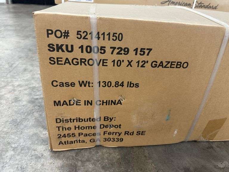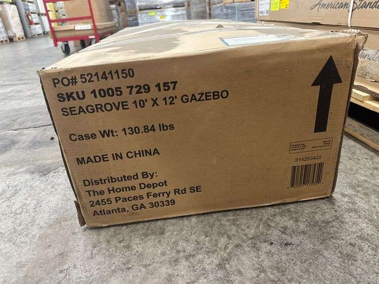 Seagrove 12'x10' Octagonal Steel Frame Gazebo with Tan Canopy. By Hampton Bay, Features Mosquito Net, Rust-Resistant Components, Powder Coated Steel Frame, Soft Top, Grade: 1st Quality Weight: 130. Sold by: Piece. Sold as: Price x Quantity.