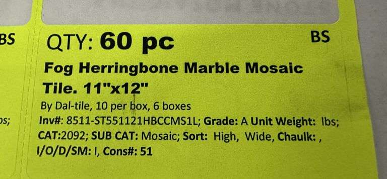 Fog Herringbone Marble Mosaic Tile 11"x12". By Dal-Tile, 10 Per Box, 6 Boxes Grade: A Weight: x. Sold by: Piece. Sold as: Price x Quantity.