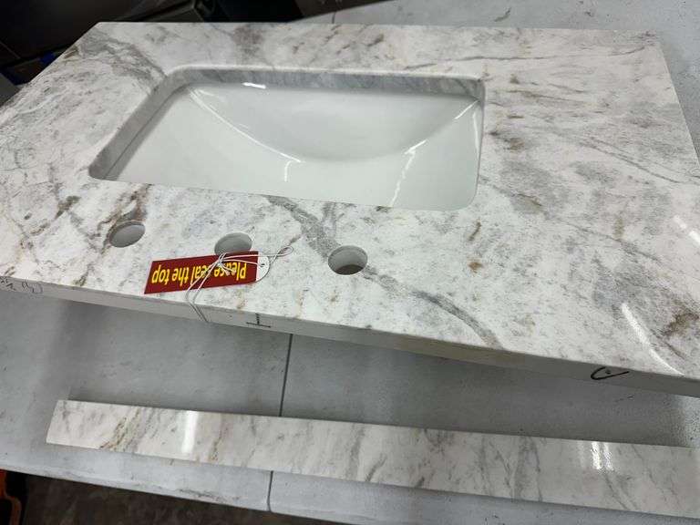 Granite Vanity Top 31"x19" with Undermount Sink. Colors May Slightly Vary, They are white and grey with a hint of tan speckle. Vanity Top Constructed Of Granite; Providing A Sturdy Feel And Clean Appearance, Has A Backsplash To Help Contain Any Messes, 8" Faucet Spread, DOES NOT Come With Faucet And Waste Assembly, Grade: A Weight: x. Sold by: Piece. Sold as: Price x Quantity.