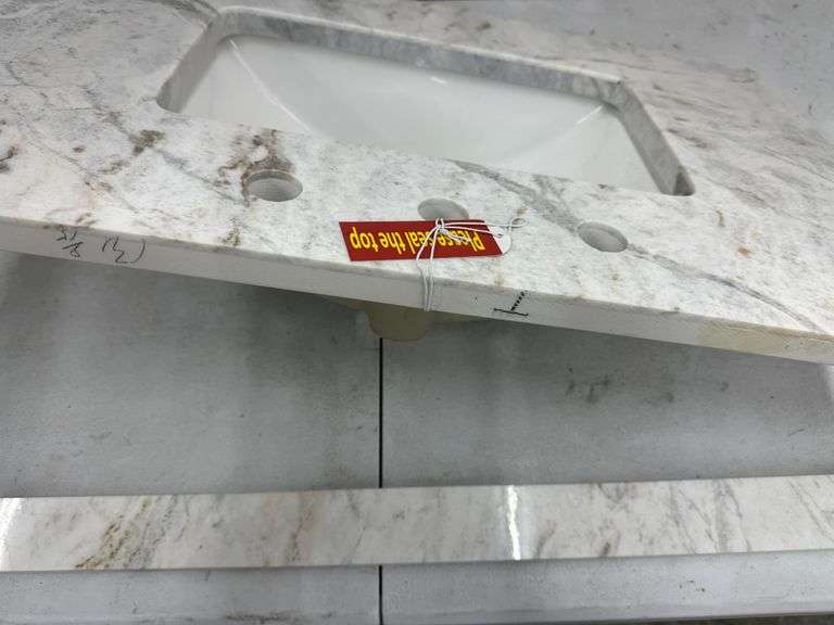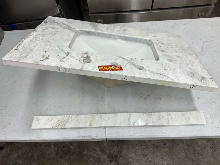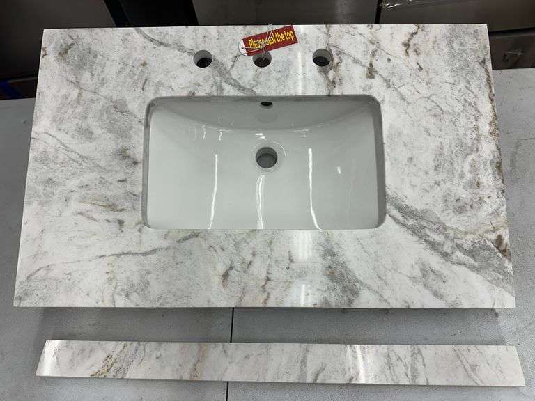 Granite Vanity Top 31"x19" with Undermount Sink. Colors May Slightly Vary, They are white and grey with a hint of tan speckle. Vanity Top Constructed Of Granite; Providing A Sturdy Feel And Clean Appearance, Has A Backsplash To Help Contain Any Messes, 8" Faucet Spread, DOES NOT Come With Faucet And Waste Assembly, Grade: A Weight: x. Sold by: Piece. Sold as: Price x Quantity.