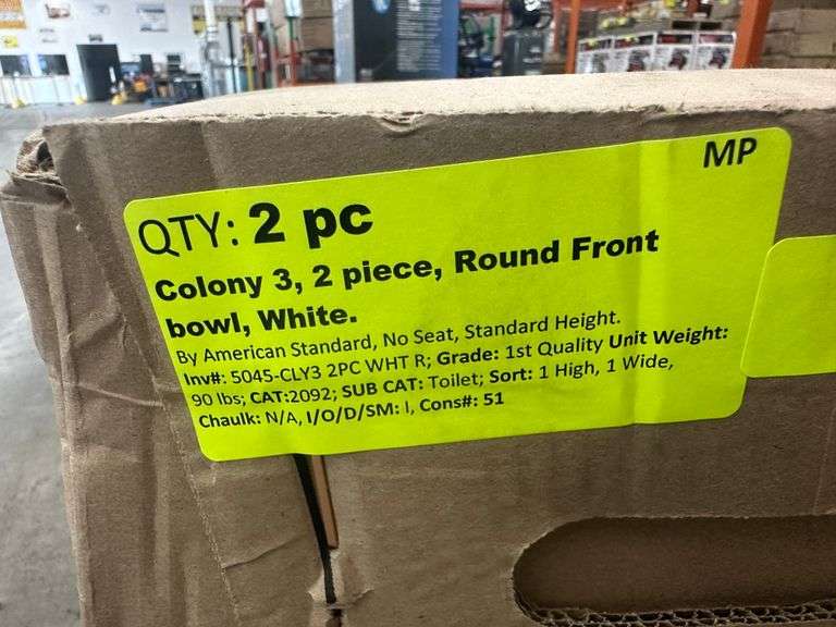 Colony 3 2 Piece Round Front Bowl White. By American Standard, No Seat, Standard Height Grade: 1st Quality Weight: 90. Sold by: Piece. Sold as: Price x Quantity.