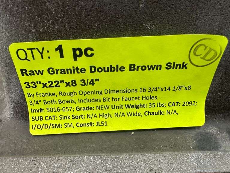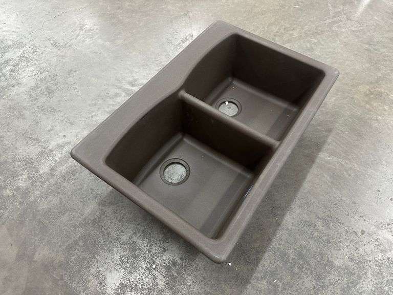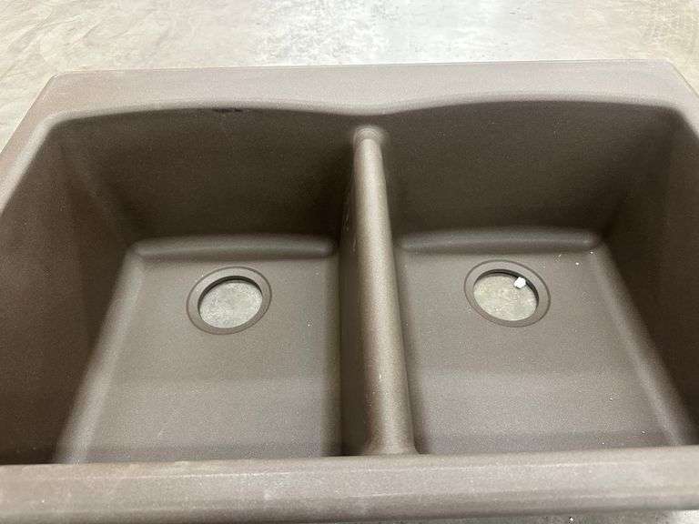 Raw Granite Double Brown Sink 33"x22"x8 3/4". By Franke, Rough Opening Dimensions 16 3/4"x14 1/8"x8 3/4" Both Bowls, Includes Bit For Faucet Holes, Grade: NEW Weight: 35. Sold by: Piece. Sold as: Price x Quantity.