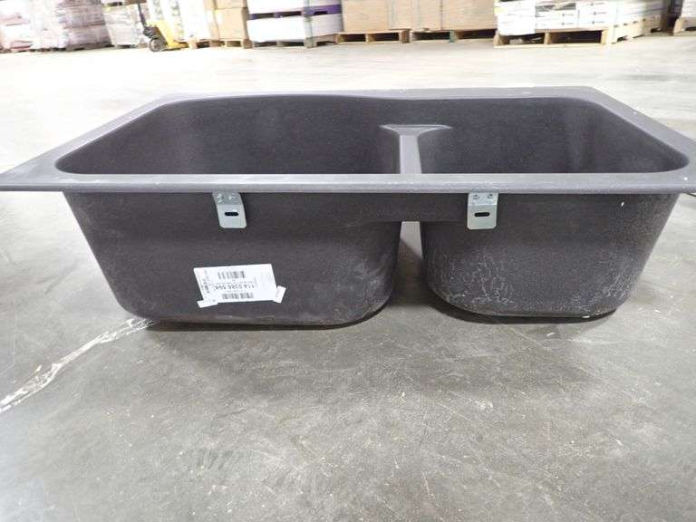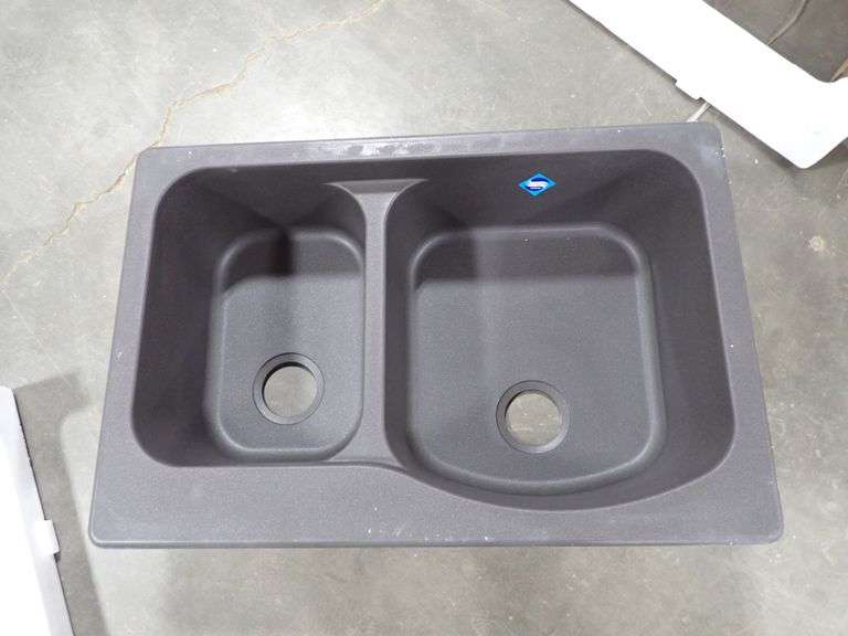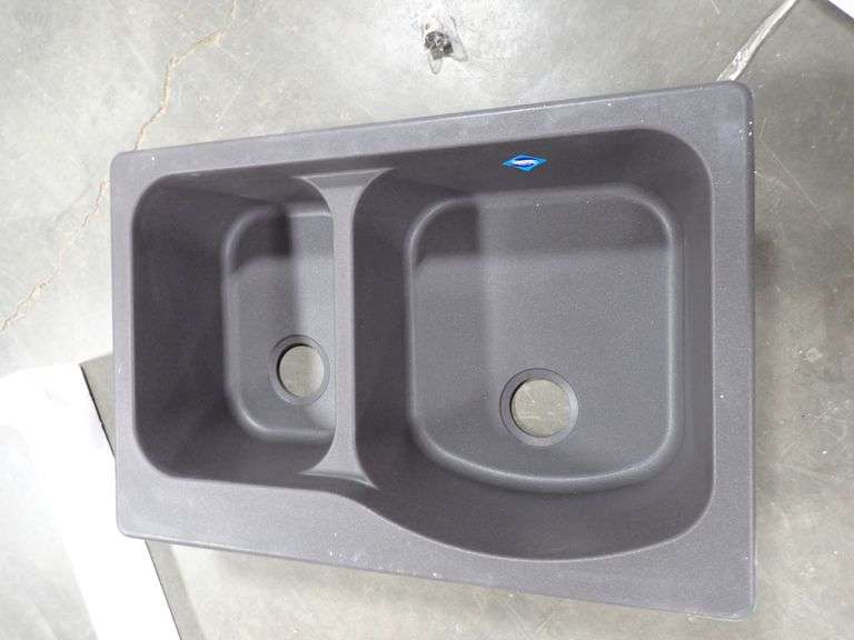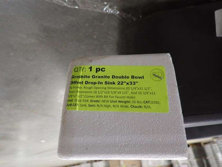 Graphite Granite Double Bowl Offset Drop-In Sink 22"x33". By: Franke, Rough Opening Dimensions: 20 1/4"x31 1/2", Bowl Dimensions: 18 1/2"x16 5/8", And 16 3/8"x11 3/8"x7 1/2", Comes With Bit For Faucet Holes, Grade: NEW Weight: 35. Sold by: Piece. Sold as: Price x Quantity.