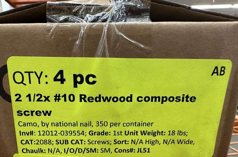 2 1/2"x#10 Redwood Composite Screw. Camo, By Natinal Nail, 350 Per Container, Grade: 1st Weight: 18. Sold by: Piece. Sold as: Price x Quantity.