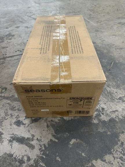Brushed Nickel 52" Ceiling Fan LED Lights 5 Blades. By: Season's, Dual Mount, Dual Finish Blades, Frosted Glass Bowl Light Kit, Reversible, Grade: A Weight: 18. Sold by: Piece. Sold as: Price x Quantity.