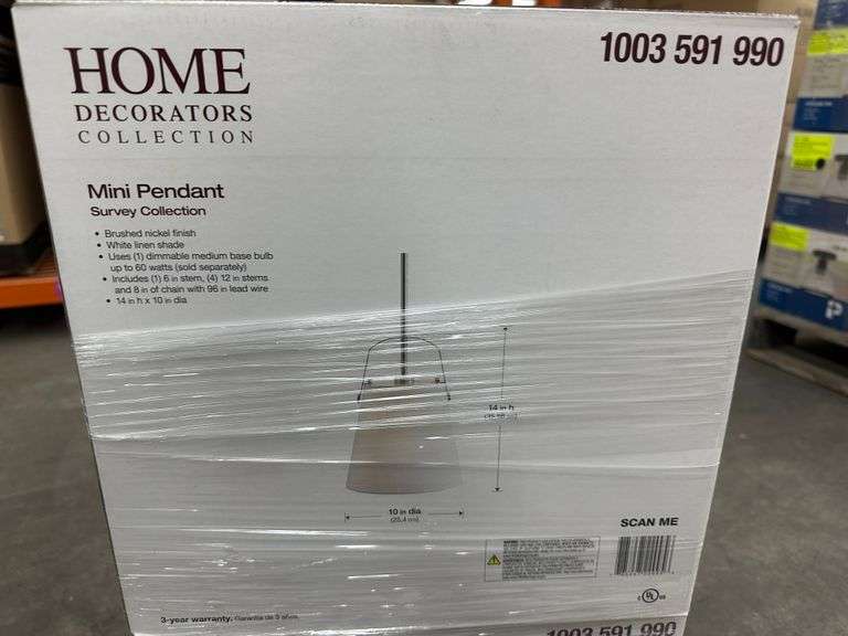 Brushed Nickel Single Mini-Pendant Lighting 14" x 10" (4pack). By Home Decorators, Survey Collection With White Linen Shade. Grade: 1st Weight: x. Sold by: Piece . Sold as: Price x Quantity.